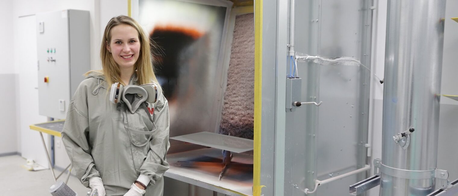 Exzellente Abschlussnoten ebneten den fulminanten Qualifizierungsweg von Lina Höttges, die ihre erste Lehre vor sechs Jahren nach verkürzter Ausbildungszeit als Beste ihres Berufsschuljahrgangs beendete. Zwei Jahre später bestand Lina Höttges auch ihre zweite Gesellenprüfung zur Karosserie- und Fahrzeugmechanikerin im Vertiefungsschwerpunkt Karosserieinstandhaltungstechnik in glänzender Manier, diesmal als Jahresbeste ihres Ausbildungsjahrgangs im Kammerbezirk Düsseldorf. Ihre zweite Berufsausbildung absolvierte Lina bereits als integralen Bestandteil des sogenannten Trialen Studiengangs an der Hochschule Niederrhein. Dieser dreifach qualifizierende Studiengang verbindet Berufslehre, ein auf Unternehmensführung im Mittelstand vorbereitendes betriebswirtschaftliches Vollstudium – und die abschließende Fortbildung zum Meister. Und auch den „Meister-Abschnitt“ ihres Kompetenzerwerbs bewältigte Lina Höttges mit Bravour: Die 26-Jährige war auch unter den Prüfungsbesten ihres Gewerks im Meisterabsolventenjahrgang 2020.